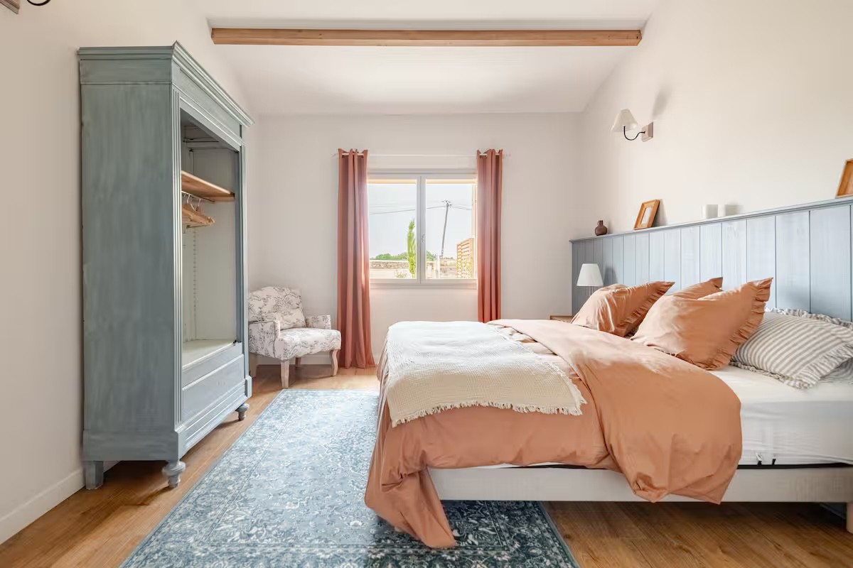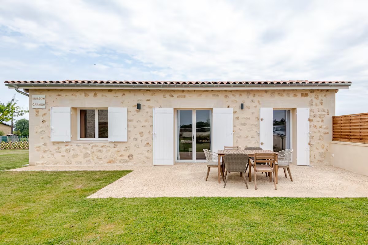 Forts du succès de notre première maison, nous redonnons vie à l'ancien chai du domaine. Baptisé Maison Carmen, ce second gîte préserve les volumes majestueux de sa fonction d'origine tout en proposant une décoration raffinée. C'est l'étape finale de notre projet : transformer un lieu de travail viticole en un sanctuaire de détente absolue.
